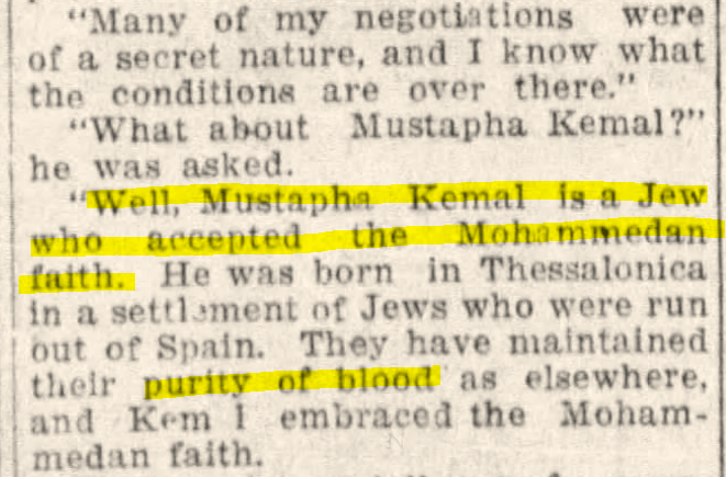 ❝Selânik 140.000 nüfusludur. Bunların 80.000 kadarı İspanyol Yahudisi, 20.000 ise dışarıya Müslüman olduklarını söyleyen, Sabetai Leviciler (!), yani Gizli-Yahudilerdir.❞13