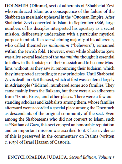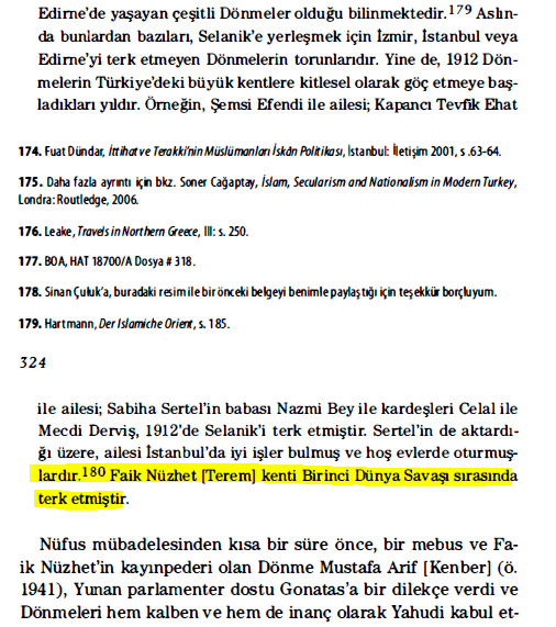 [15] Marc David Baer. (2011). Selanikli Dönmeler: Yahudilikten dönenler, Müslüman devrimciler ve seküler Türkler (S. Kayır, çev.) içinde (s. 181). İstanbul: Doğan Kitap.