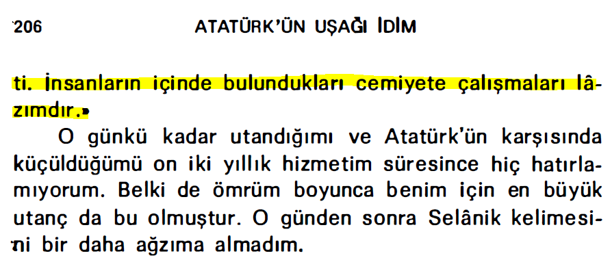 ❝Ustrumcadaki hocalarımdan Pembe Hanım, oradan birisiyle evlenmiş Yalılar’da oturuyordu. Yeni çocuk doğurmuştu. O bebeği görmeye gitmiştik. Çakıl taşlı palmiye ağaçlı bahçeden geçtiğimizi, evin gayet lüks olduğunu hatırlıyorum. Yalılar denen yerde oturanların çoğu dönmeler yani Sabetaycılardı ve tabii zengin bir muhitti orası.❞20