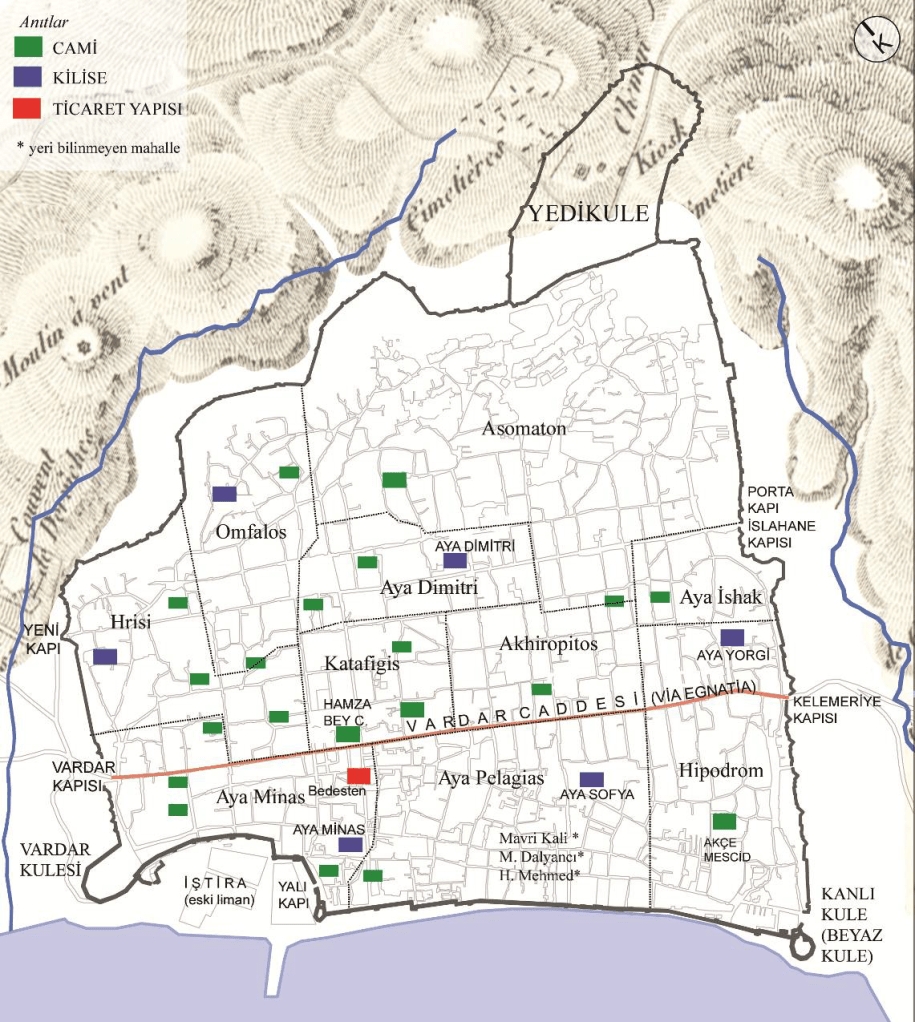 Görsel 10. Dinî tasnifle “1525’te Selânik mahalleleri” (Gencer, 2012, s. 337).
