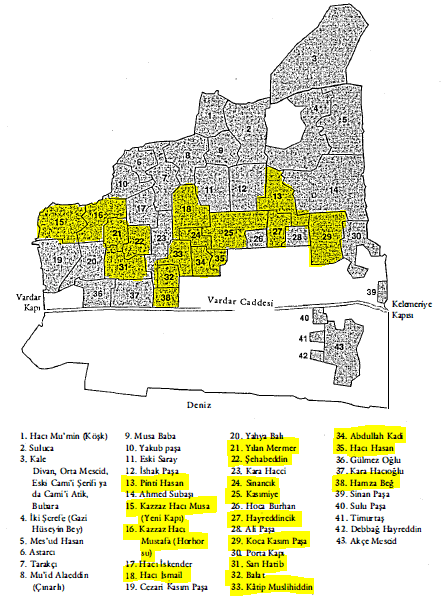 Görsel 9. “1478 Selânik mahalleleri” (Gencer, 2012, s. 336).
