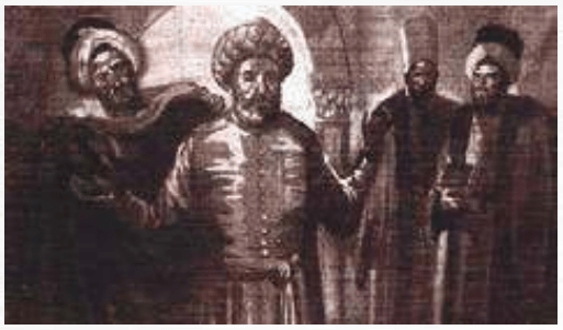 Görsel 2. “Sabetay Sevi’nin Osmanlı sarayında Müslümanlığa geçişini tasvir eden Münif Fehim tarafından çizilen resim.” (Kent Konak, 2017, s. 54).