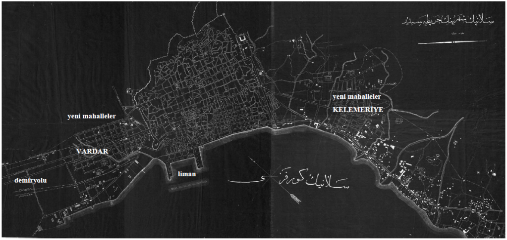 Selânik’te 1885 yılında yapılan yeni binalar genellikle üç, dört katlıdır. Kentte 46’sı İslam, 16’sı Musevi (daha sonra bir mahalle daha eklenecek ve 17 mahalle olacaktır), 13’ü Hıristiyan olmak üzere toplam 75 mahallede 6.452 hane bulunmaktadır. Yabancılar hariç tutulursa 30.743 erkek ve 30.690 kadın nüfus vardır. 1890 yılında şehir 75 mahalleye ayrılmıştır. 46 İslam, 16 Yahudi, 12 Rum, ve 1 Frenk mahallesi vardır. 30.000 İslam, 45.000 Yahudi ve Rum ve Frenk mahallelerinde 13.000 nüfus vardır. Şehrin toplam nüfusu da 88.000 bin olarak verilmektedir. (..)